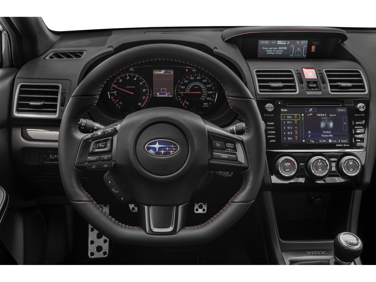 Lumos Honda of Odessa, Texas is proud to present you with this 2021 Subaru WRX Premium that is loaded with the following Factory Options:Popular Package #3 (IZT) (All-Weather Floor Liners, Alloy Wheel Locks, Auto-Dimming Mirror w/Compass & HomeLink, Cargo Tray, LED Upgrade - Map & Dome Lights, and Rear Bumper Applique), Standard Model (6MT), 4-Wheel Disc Brakes, 6 Speakers, ABS brakes, Air Conditioning, Alloy wheels, AM/FM radio: SiriusXM, Automatic temperature control, Brake assist, Bumpers: body-color, Cargo Net, CD player, Checkered Cloth Upholstery, Driver door bin, Driver vanity mirror, Dual front impact airbags, Dual front side impact airbags, Electronic Stability Control, Exterior Parking Camera Rear, Four wheel independent suspension, Front anti-roll bar, Front Bucket Seats, Front Center Armrest, Front fog lights, Front reading lights, Heated door mirrors, Heated front seats, Illuminated entry, Knee airbag, Leather Shift Knob, Leather steering wheel, Low tire pressure warning, Occupant sensing airbag, Outside temperature display, Overhead airbag, Overhead console, Panic alarm, Passenger door bin, Passenger vanity mirror, Performance Design Heated Front Bucket Seats, Power door mirrors, Power moonroof, Power steering, Power windows, Radio data system, Radio: Subaru STARLINK 7.0 Multimedia Plus System, Rear anti-roll bar, Rear seat center armrest, Rear window defroster, Red Footwell Illumination Kit, Remote keyless entry, Security system, Side Sill Plates, Speed control, Speed-sensing steering, Split folding rear seat, Spoiler, Sport steering wheel, STARLINK/Apple CarPlay/Android Auto, Steering wheel mounted audio controls, Tachometer, Telescoping steering wheel, Tilt steering wheel, Traction control, Trip computer, Variably intermittent wipers, and Wheels: 18 x 8.5 High Luster Finish Alum Alloy.