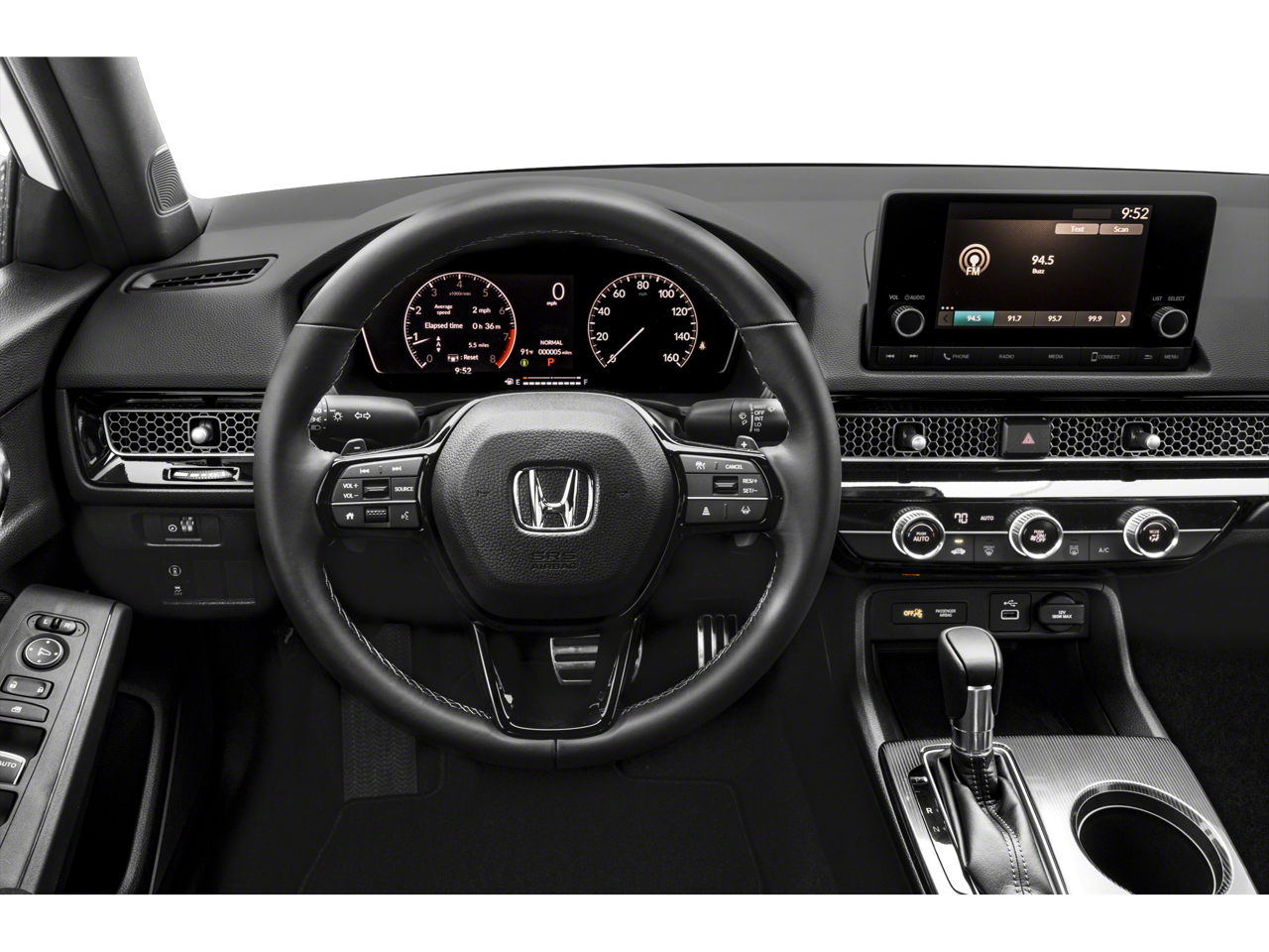 Lumos Honda of Odessa, Texas is proud to present you with this 2023 Honda Civic Sport that is loaded with the following Factory Options:Black Cloth, 4-Wheel Disc Brakes, 8 Speakers, ABS brakes, Adaptive Cruise Control: Adaptive Cruise Control (ACC) with Low-Speed Follow, Air Conditioning, Alloy wheels, AM/FM radio, Apple CarPlay/Android Auto, Auto High-beam Headlights, Automatic temperature control, Brake assist, Bumpers: body-color, Cloth Seat Trim, Delay-off headlights, Driver door bin, Driver vanity mirror, Dual front impact airbags, Dual front side impact airbags, Electronic Stability Control, Emergency communication system: HondaLink, Exterior Parking Camera Rear, Four wheel independent suspension, Front anti-roll bar, Front Bucket Seats, Front Center Armrest, Front reading lights, Fully automatic headlights, Illuminated entry, Knee airbag, Leather Shift Knob, Leather steering wheel, Low tire pressure warning, Occupant sensing airbag, Outside temperature display, Overhead airbag, Panic alarm, Passenger door bin, Passenger vanity mirror, Power door mirrors, Power steering, Power windows, Radio data system, Radio: 180-Watt Audio System w/8 Speakers, Rear anti-roll bar, Rear side impact airbag, Rear window defroster, Remote keyless entry, Security system, Speed control, Speed-sensing steering, Steering wheel mounted audio controls, Tachometer, Telescoping steering wheel, Tilt steering wheel, Traction control, Trip computer, and Wheels: 18 Gloss Black Alloy.
