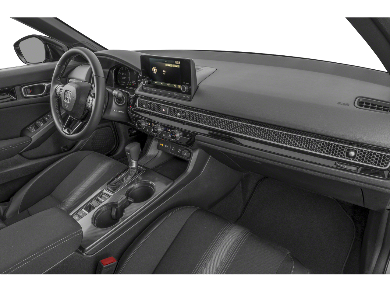 Lumos Honda of Odessa, Texas is proud to present you with this 2026 Honda Civic Hybrid Sport that is loaded with the following Factory Options:2.0L 16V DOHC, ABS brakes, Active Cruise Control, Alloy wheels, Electronic Stability Control, Front dual zone A/C, Heated door mirrors, Heated Front Bucket Seats, Heated front seats, Illuminated entry, Low tire pressure warning, Power moonroof, Remote keyless entry, Traction control, 4-Wheel Disc Brakes, 8 Speakers, Adaptive Cruise Control: Adaptive Cruise Control (ACC) with Low-Speed Follow, Air Conditioning, AM/FM radio, Apple CarPlay/Android Auto, Auto High-beam Headlights, Automatic temperature control, Blind Spot Information (BSI) System warning, Brake assist, Bumpers: body-color, Cloth/Leatherette Seat Trim, Delay-off headlights, Driver door bin, Driver vanity mirror, Dual front impact airbags, Dual front side impact airbags, Emergency communication system: HondaLink, Exterior Parking Camera Rear, Four wheel independent suspension, Front anti-roll bar, Front Bucket Seats, Front Center Armrest, Front reading lights, Fully automatic headlights, Knee airbag, Leather Shift Knob, Leather steering wheel, Occupant sensing airbag, Outside temperature display, Overhead airbag, Panic alarm, Passenger door bin, Passenger vanity mirror, Power door mirrors, Power steering, Power windows, Radio data system, Radio: 180-Watt Audio System, Rear anti-roll bar, Rear seat center armrest, Rear side impact airbag, Rear window defroster, Security system, Speed control, Speed-sensing steering, Split folding rear seat, Steering wheel mounted audio controls, Tachometer, Telescoping steering wheel, Tilt steering wheel, Trip computer, Variably intermittent wipers, and Wheels: 18 Gloss Black Alloy.